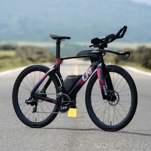 Het frame en de voorvork zijn ontworpen voor schijfremmen, met aerodynamische vormen die de luchtweerstand verminderen en zorgen voor krachtige, betrouwbare remprestaties. Dit biedt betere controle in bochten en consistente prestaties onder alle weersomstandigheden.
