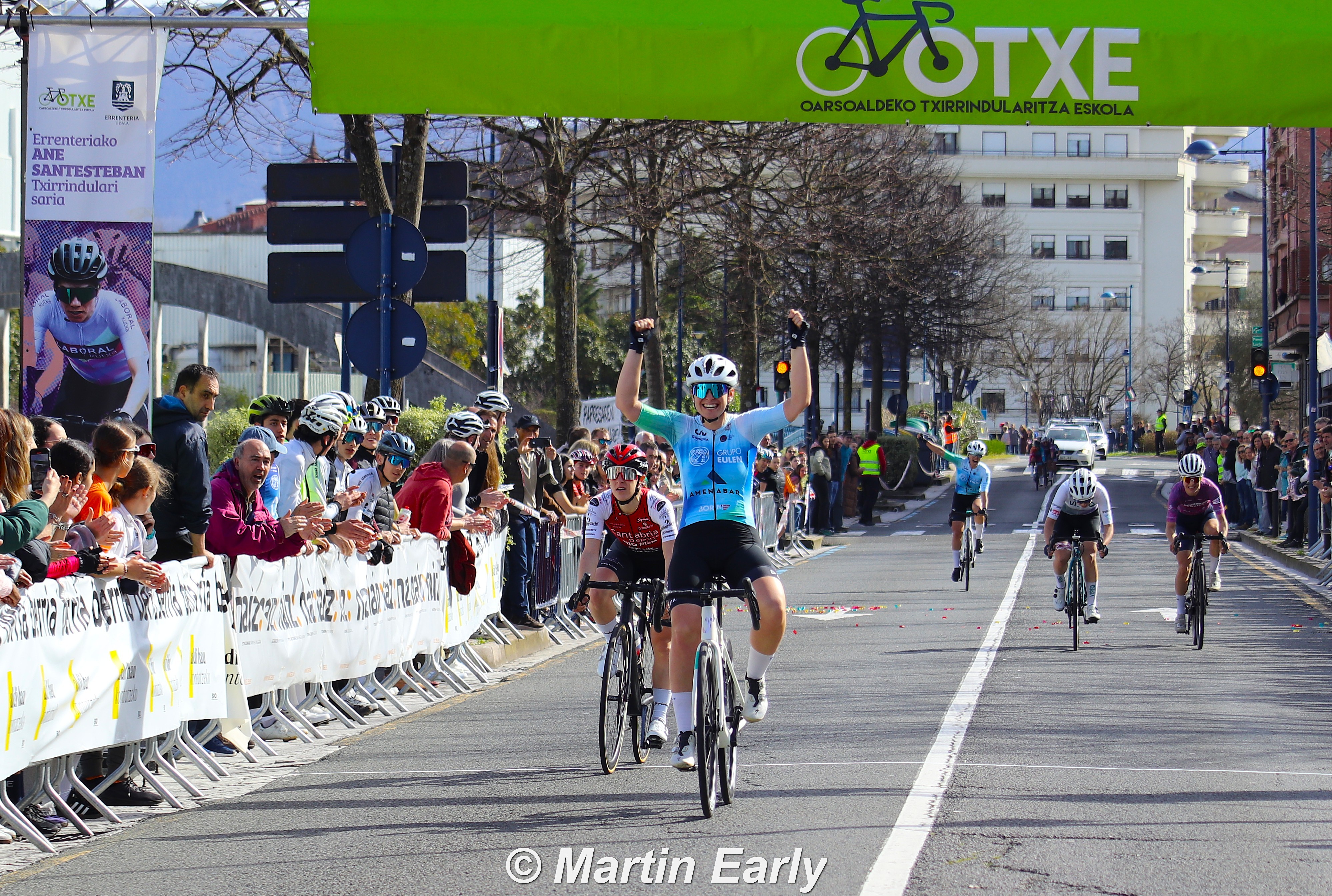Estas dos fuertes aceleraciones lograron descolgar a las corredoras más rápidas de la escapada. Finalmente, un quinteto enfiló la Nafarroa Hiribidea de Orereta para disputarse el triunfo en un sprint reducido. Tras el excelente trabajo colectivo, Claudia San Justo no falló: la reciente incorporación al equipo alzó los brazos con gran superioridad. Toda la plantilla celebró la victoria con alegría y emoción, confirmando que la exigencia y la dureza de haber competido entre profesionales ya está dando sus frutos.