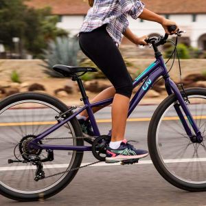 Enchant is designed to be light, agile, and easy to maneuver on the dirt. Fast-rolling 24-inch wheels and trail-ready tires make Enchant a fun, stable bike to help her build confidence and skills. Hand brakes provide powerful stopping power, and with easy-to-use twist shifters, she’ll feel excited and secure as she tackles new terrain. Enchant inspires girls to take their wheels to the dirt with fun, colorful style in a lightweight package. Young ones are delighted to hop on, thanks to friendly geometry, low stand-over height and stability that reinforce a positive learning environment.