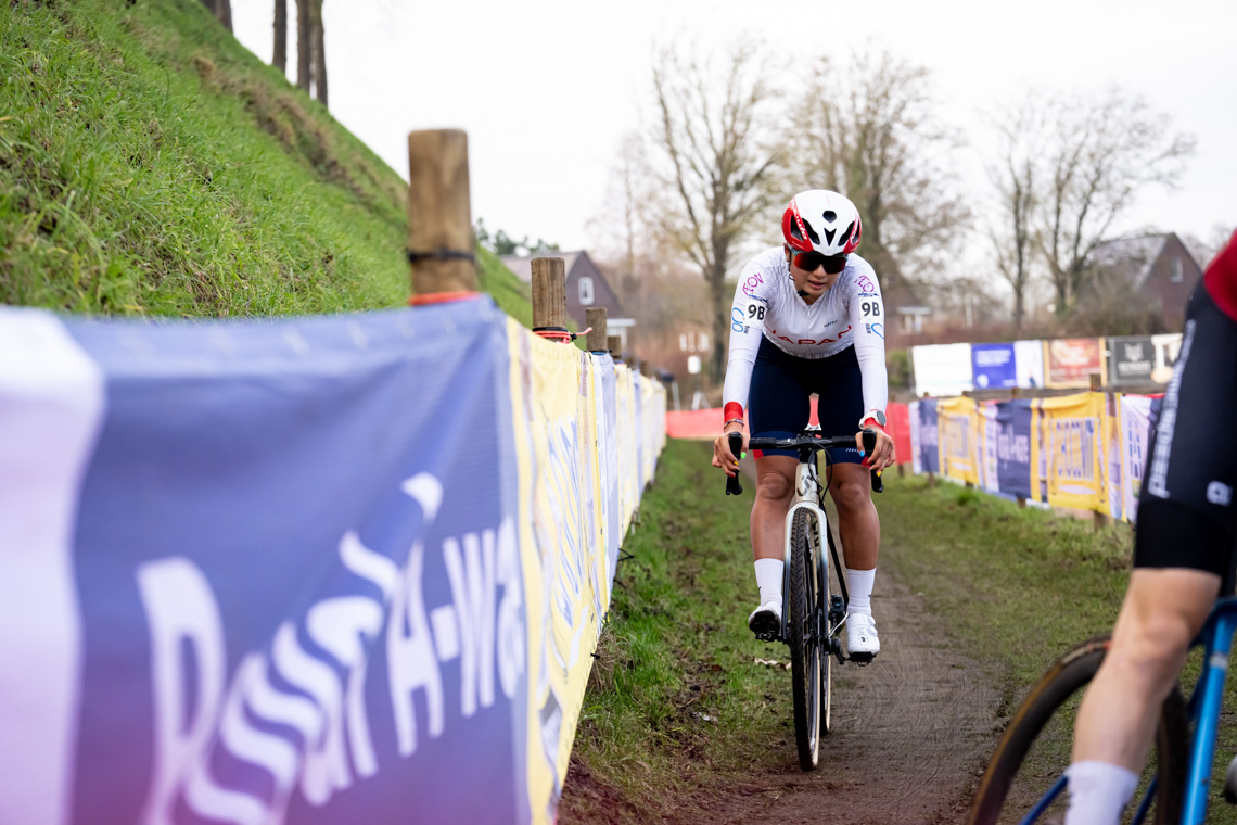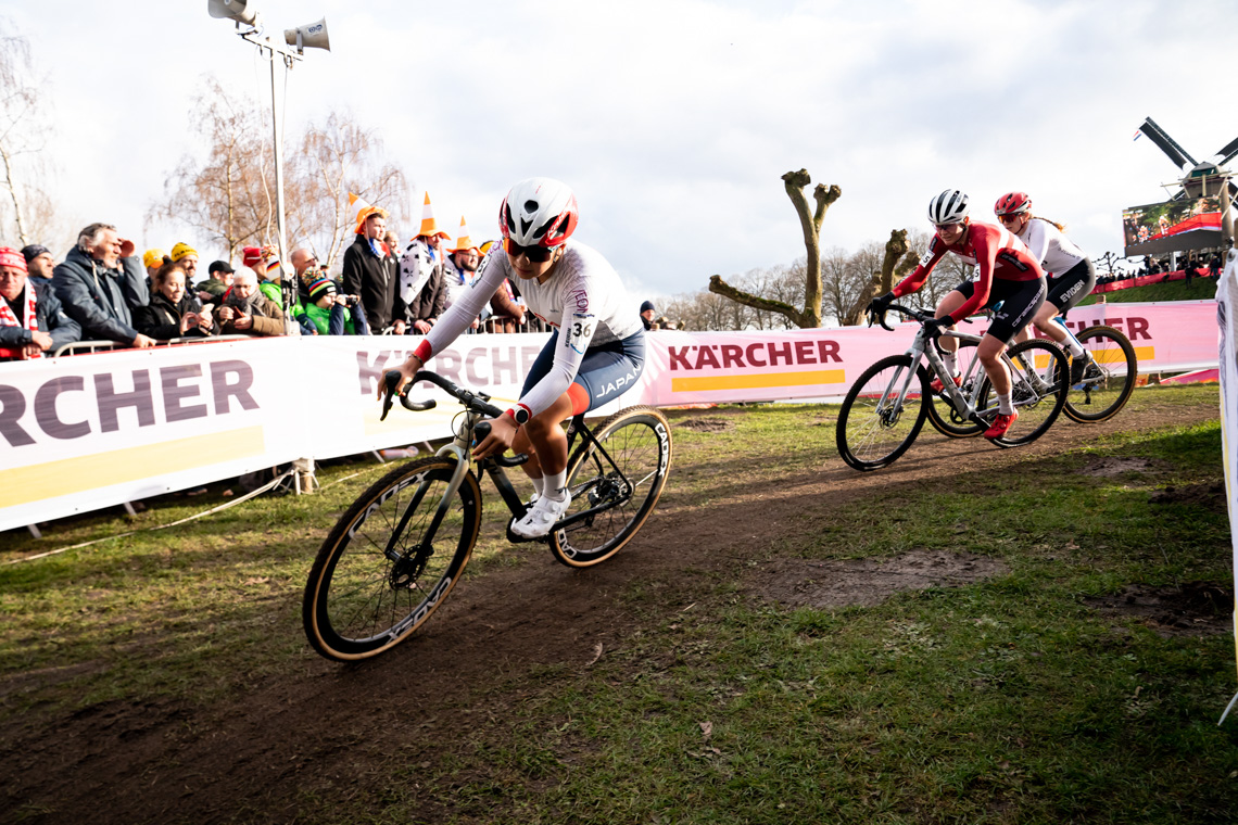 続く土曜日は、渡部選手にとって初めての挑戦となる女子エリート。地元オランダの強豪選手たちがハイペースなレースを展開する後方で、渡部選手はBravaと共にフルストの難コースに挑みますが、完走を果たすことはできず。「エリートはレベルが高く、満足のいく走りはできませんでした」と悔しさをにじませたものの、同時に「ここが今の自分の位置だと思い、今後に繋げていきたいです」と再挑戦を誓いました。