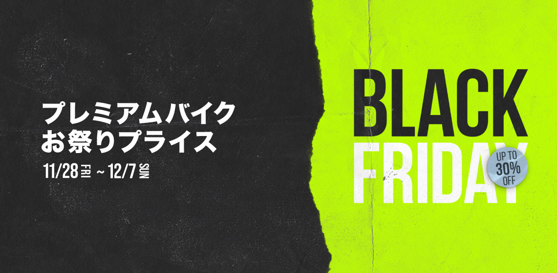 GIANTとLiv では、日頃のご愛顧への感謝を込め、オンライン注文と店舗受け取りを組み合わせた 「Click & Collect(クリック&コレクト)」 による国内初の「Black Friday セール」を開催します。ロードバイク、グラベルバイク、マウンテンバイクの中から、一部の「GIANT Premium Model(カーボンバイクまたはダブルサスペンションバイク)」を期間限定 最大30%OFFの特別価格でご提供。お好きな時間にオンラインで商品を選び、プロの整備を受けた状態でお近くの店舗で受け取れる、スムーズで安心の購入体験をご利用いただけます。