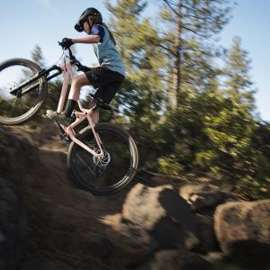 With the wide-wall technology of TRA WheelSystem, young riders can enjoy enhanced traction through lower tire pressure, increasing grip and stability. For smaller riders, 27.5-inch front and 26-inch rear wheels bring burly handling, ready for progression. A dropper seatpost makes it easy to optimize riding position while climbing or descending, giving them more control to conquer the trail.