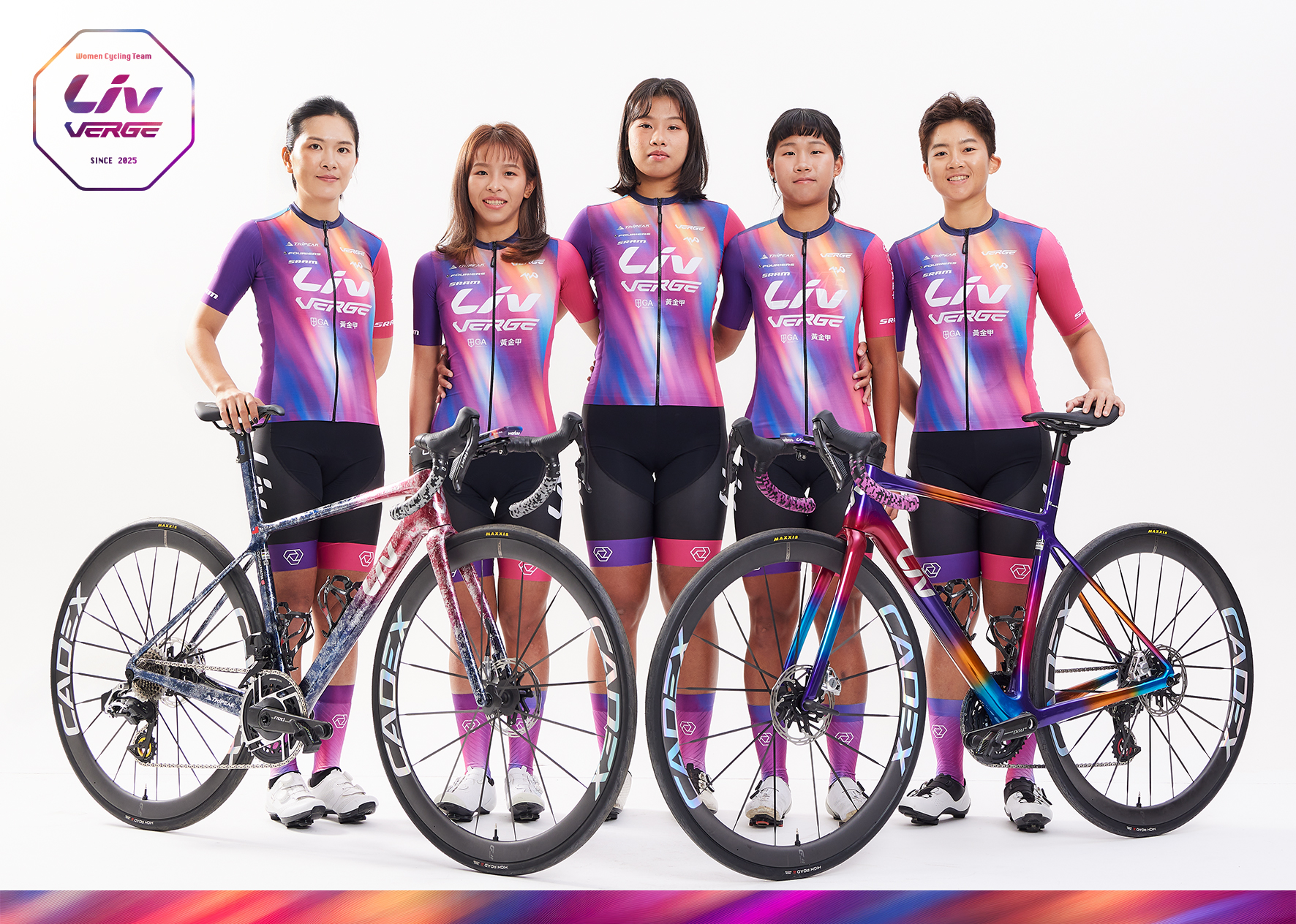 Liv-Verge女子自由車隊於1月6日正式宣布成軍,作為一支全新、且是台灣唯一以全女性選手組合成的自由車隊,Liv-Verge車隊旨在透過資源的整合與經驗傳承,為台灣女子自由車界注入更多能量。以曾可妡和蔡雅羽兩位在國際與台灣皆戰功彪炳的明星選手領銜,搭配李易珊、黃文欣和楊喬卉3位新生代選手,Liv-Verge隊經理陳彥霖除了期許這支5人戰隊能在台灣車壇掀起漣漪,同時也希望銜接Liv全球潛力選手培訓計畫,期待車隊能持續輸出更多新血,成為車壇日後的生力軍,陳彥霖表示:「把選手送到更大的舞台,是我們和Liv的共識,希望進來的選手能繼續向上延伸發展!」